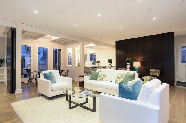 In this luxury new construction, Staging North Shore worked with the builder to bring in furniture, artwork and accessories for the living room, dining room, family room, kitchen, office, master bedroom and bathroom. The carefully selected pieces beautifully finished the space, allowing buyers to gain an excellent understanding on how to best furnish the home.